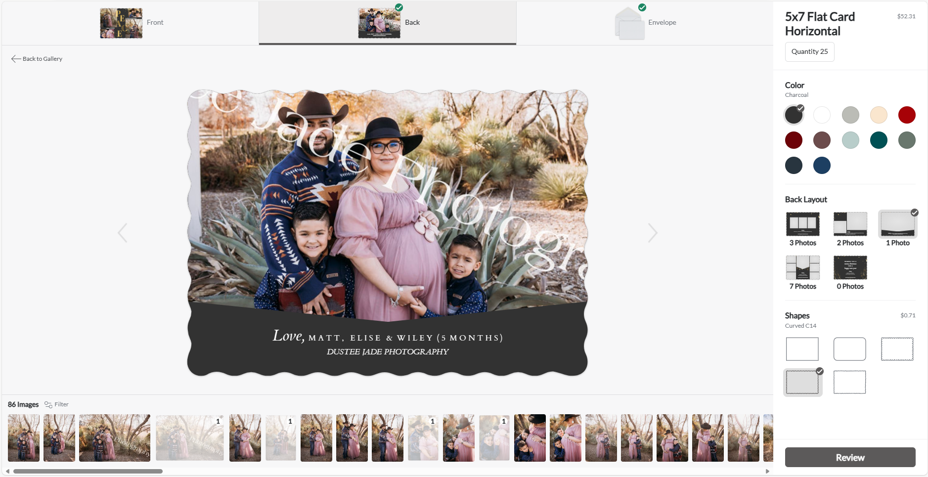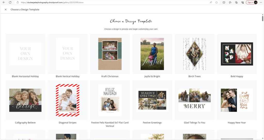 Each session includes 5 digital images for download, and a set of 25 Christmas Cards that you can design to your liking!